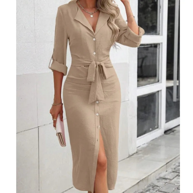 La Robe Chemise Ceinturée, le choix parfait pour allier élégance et confort. Son design intemporel et ses détails pratiques en font une pièce incontournable de ta garde-robe.