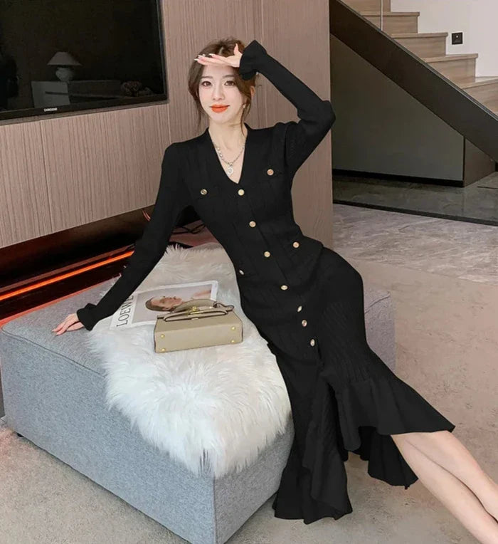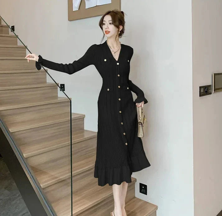 La Robe Chemise Col V est la pièce polyvalente par excellence, passant facilement du bureau aux sorties entre amies avec élégance et simplicité.