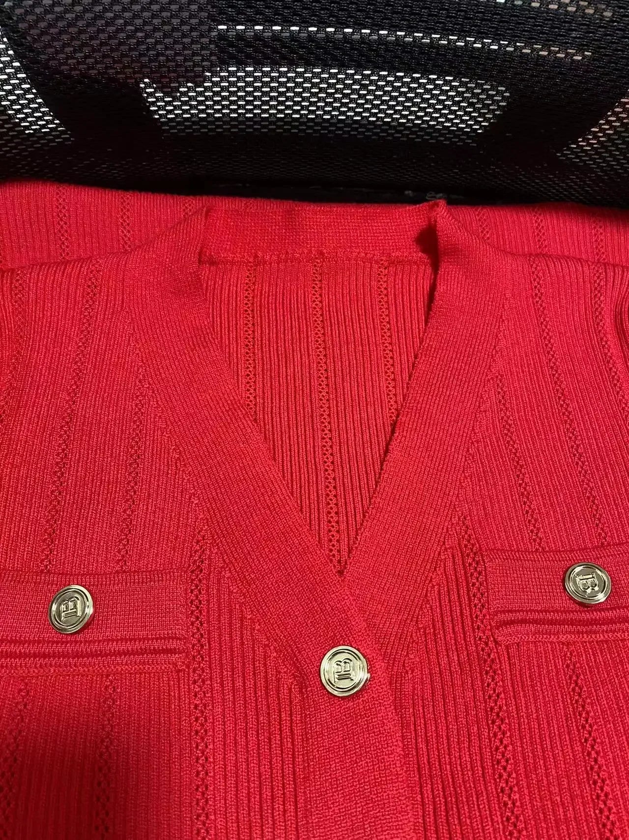 Col en V élégant, coupe ajustée, manches longues, longueur mi-longue, polyester résistant, disponibles en plusieurs tailles.