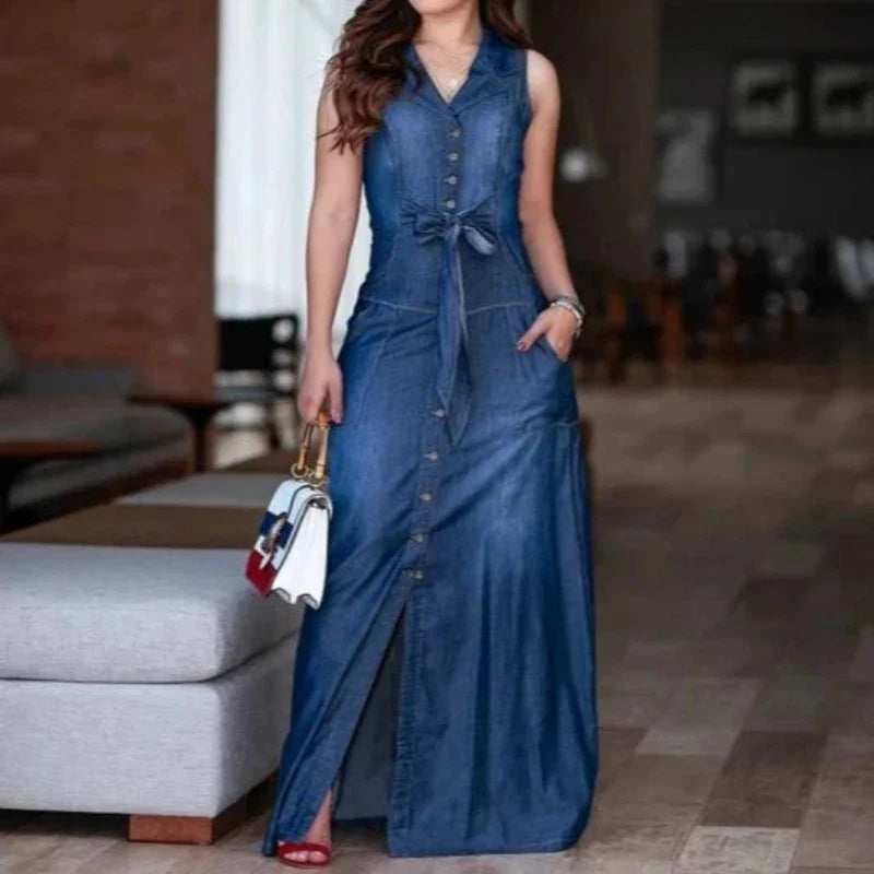 Découvre la Robe Chemise en Jean Sans Manche