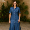 Une Robe Chemise Longue Bleue Élégante et Décontractée